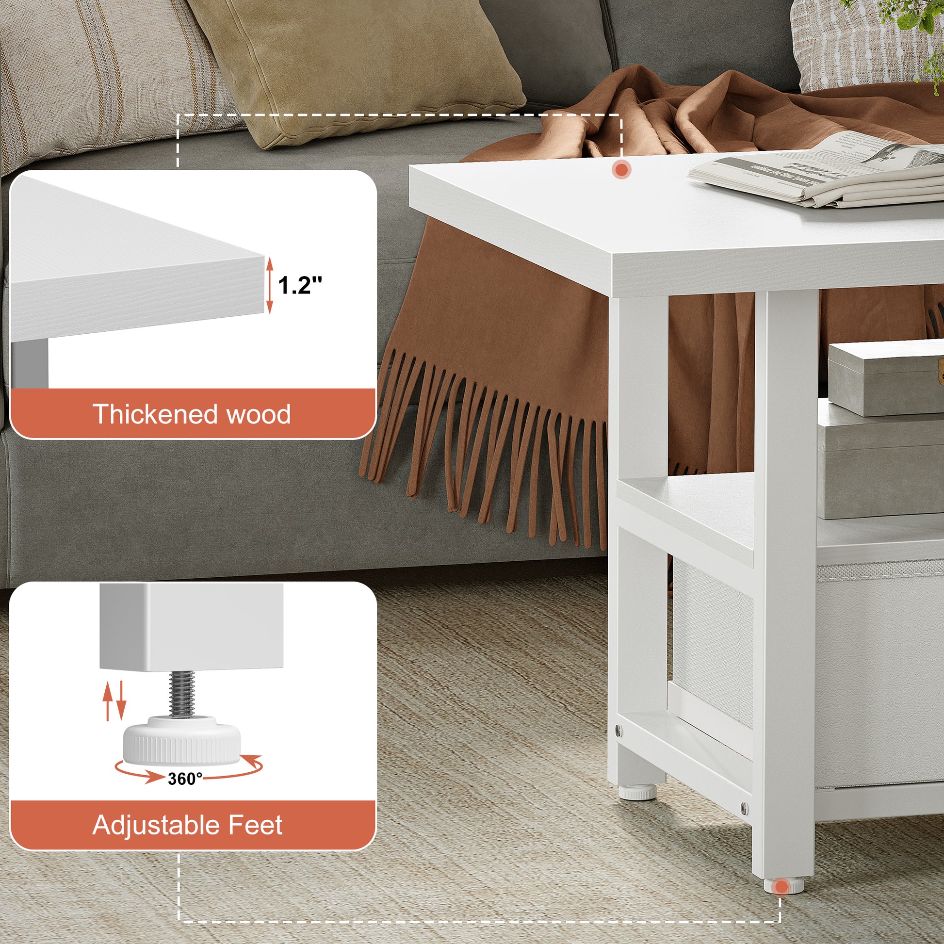 WOWLIVE Farmhouse Wood Coffee Table, Small Cocktail Table with 2 Drawers