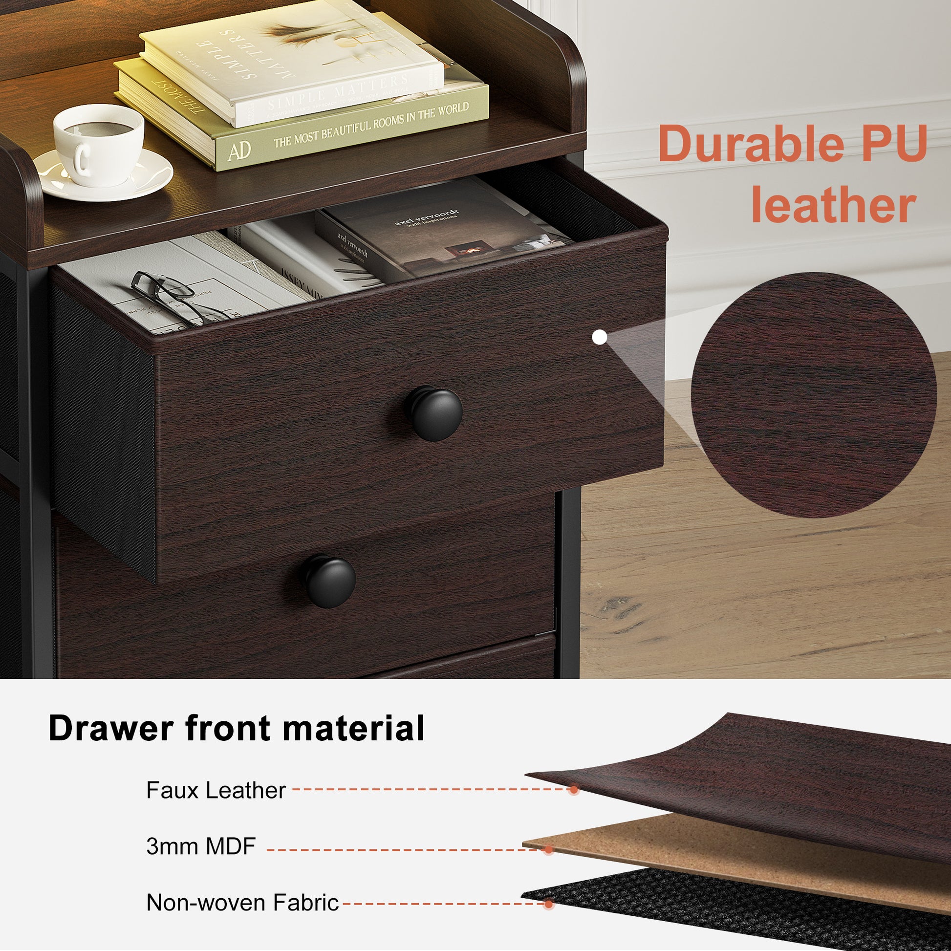 WOWLIVE Nightstand With 3 Drawers & 2-Tier Open Shelf, Bedside Table With LED& 2 USB Ports, Stable Metal Frame