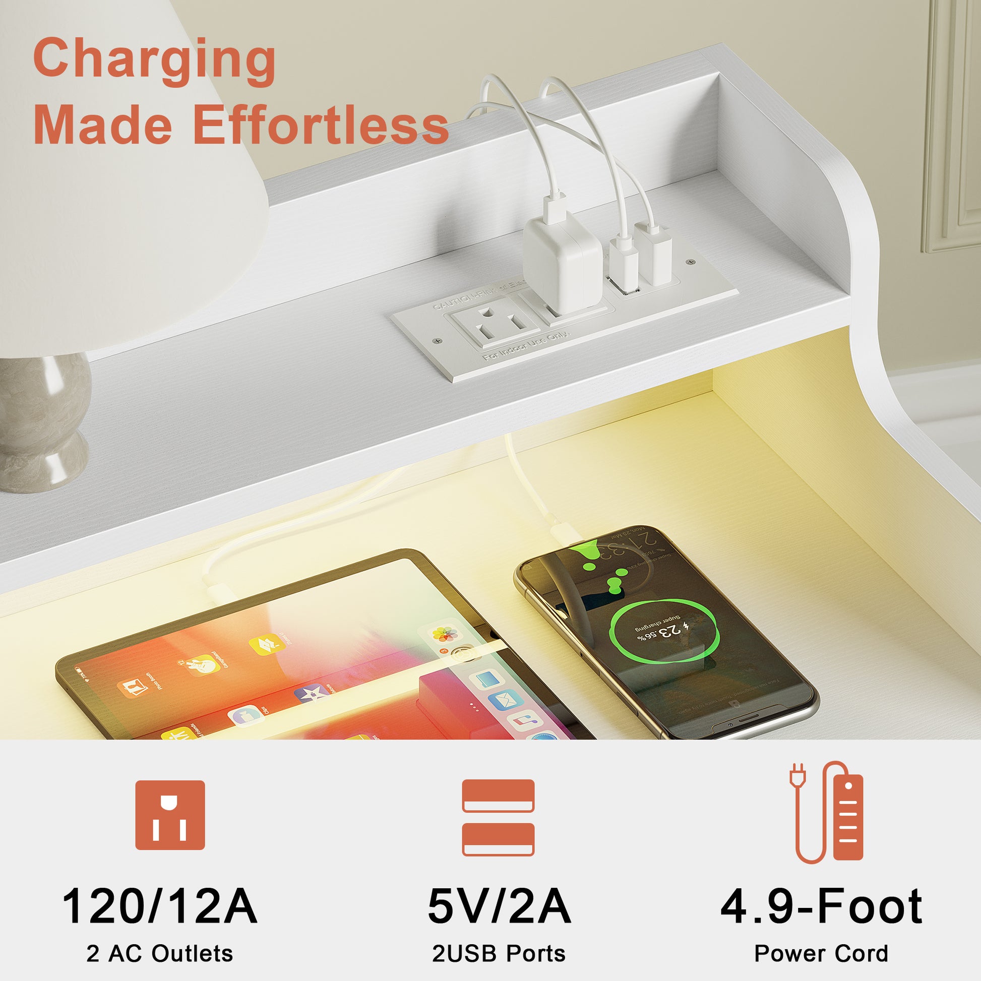 2 AC Outlets & USB Ports : Never worry about running out of power again! The built-in outlets on this nightstand make charging your cell phone or iPad more convenient. Whether you're using a USB or AC outlet, it's designed to meet all your charging needs!