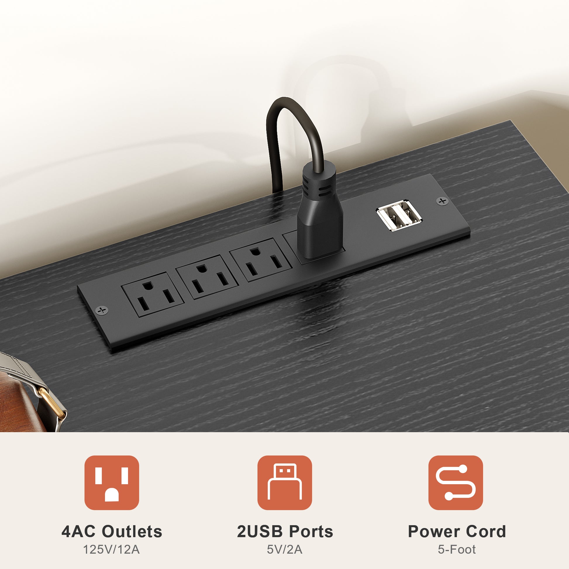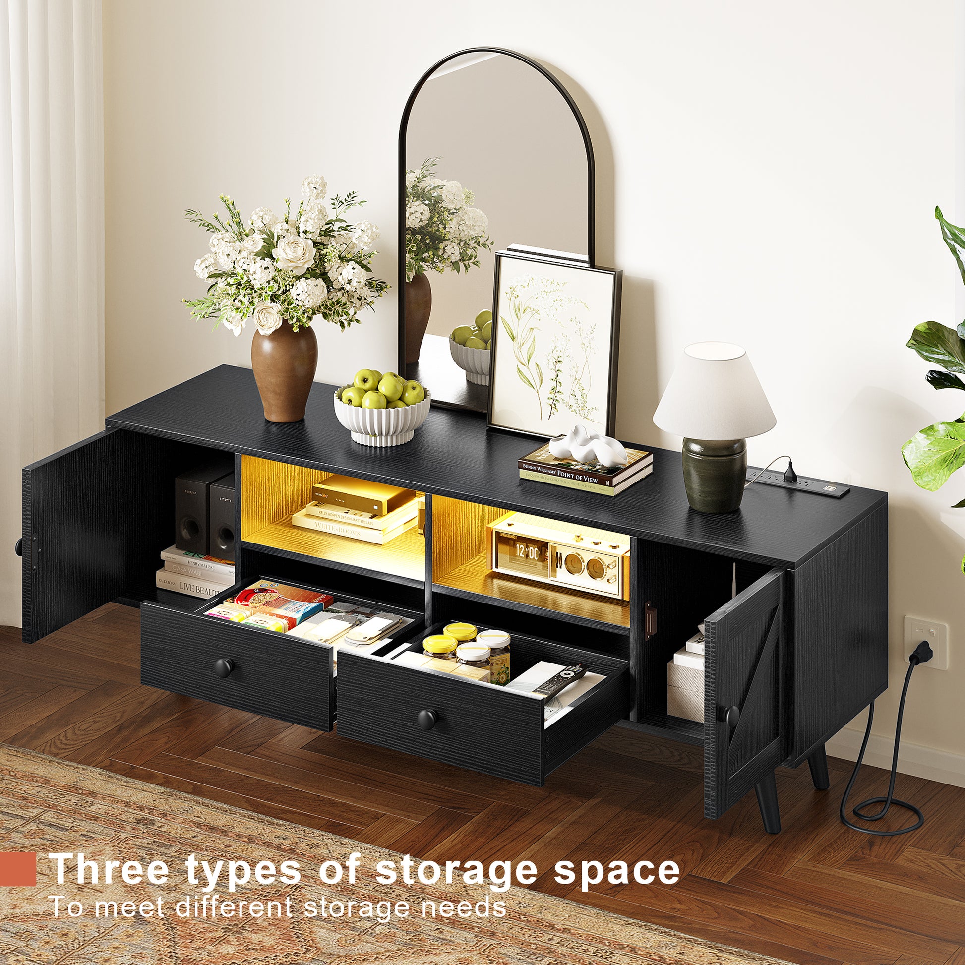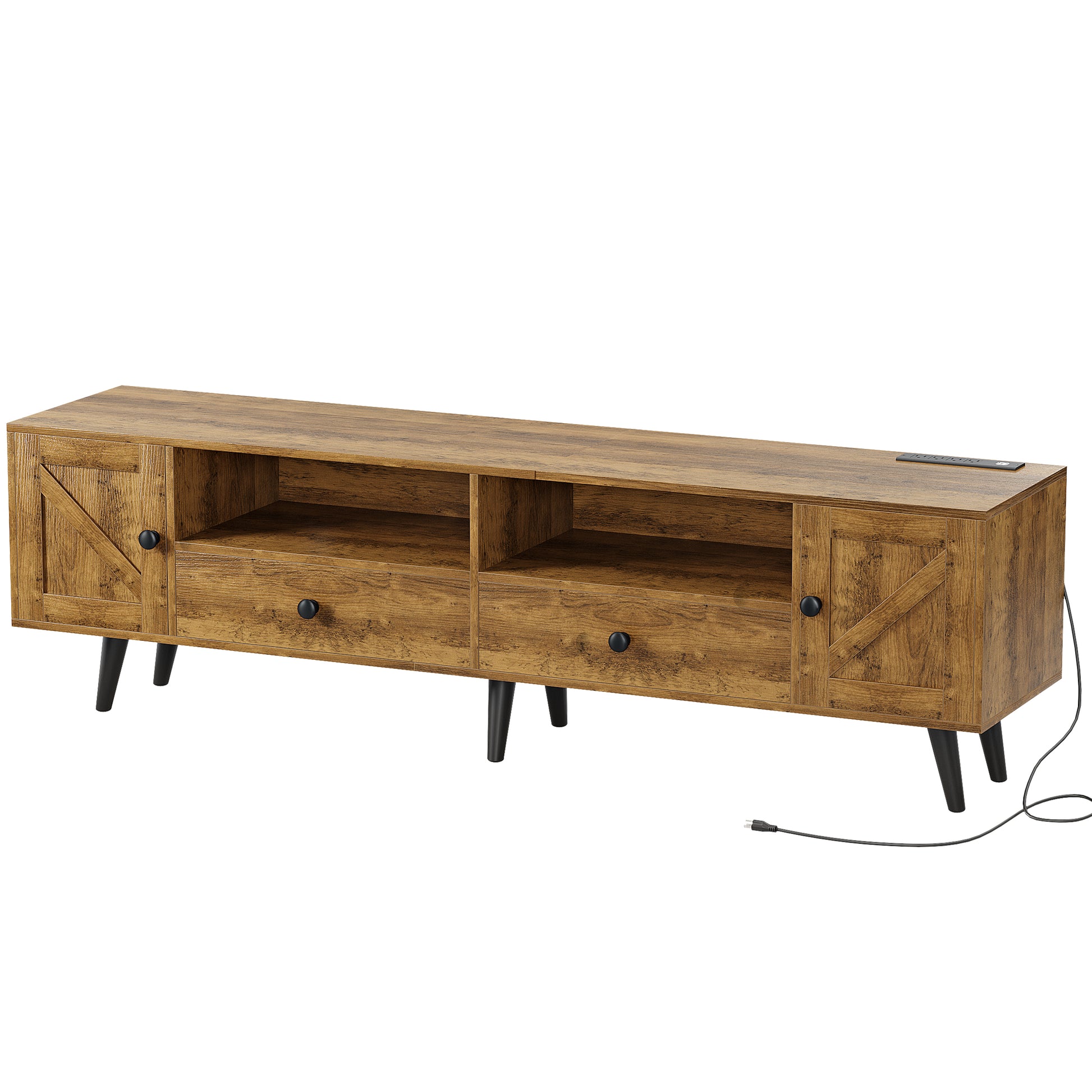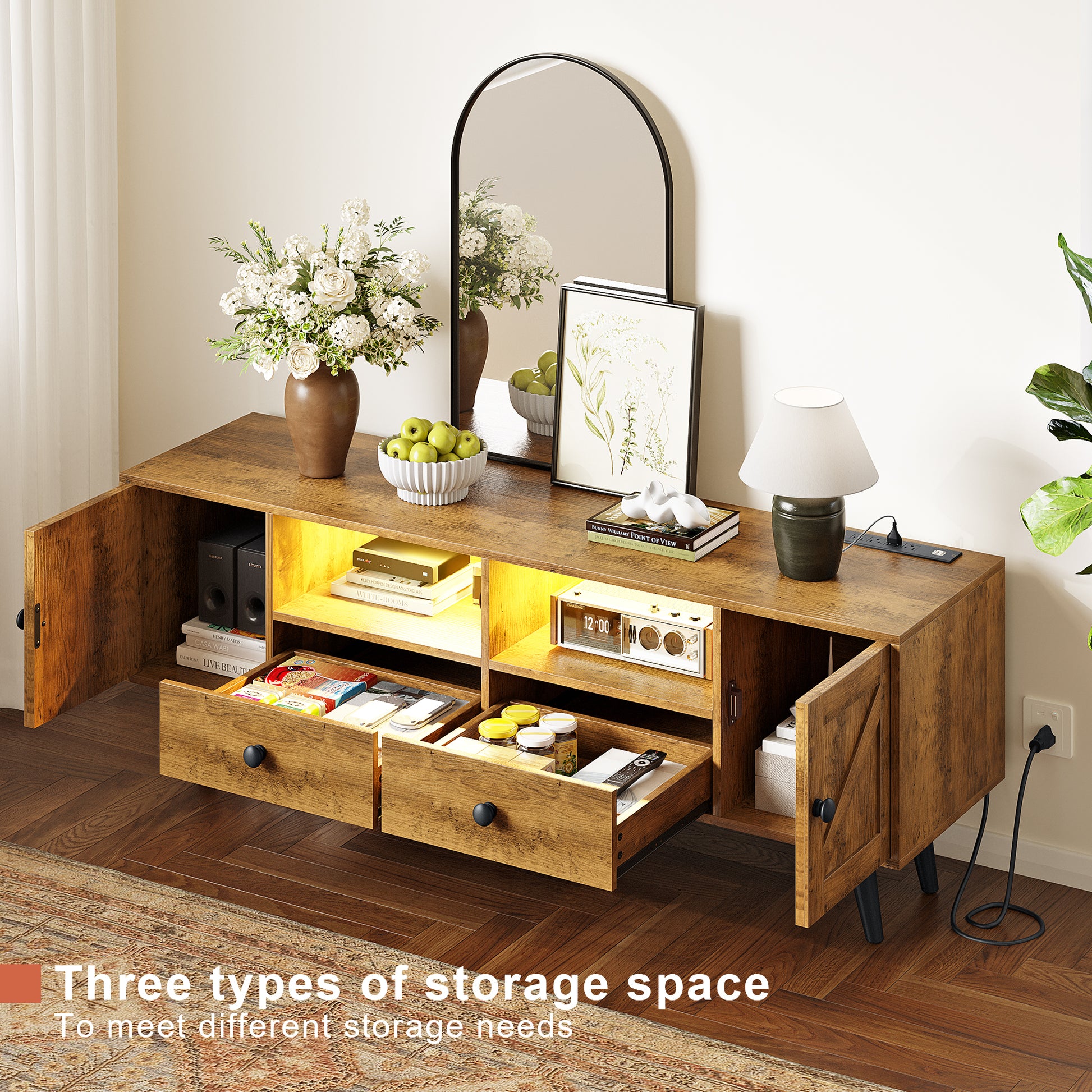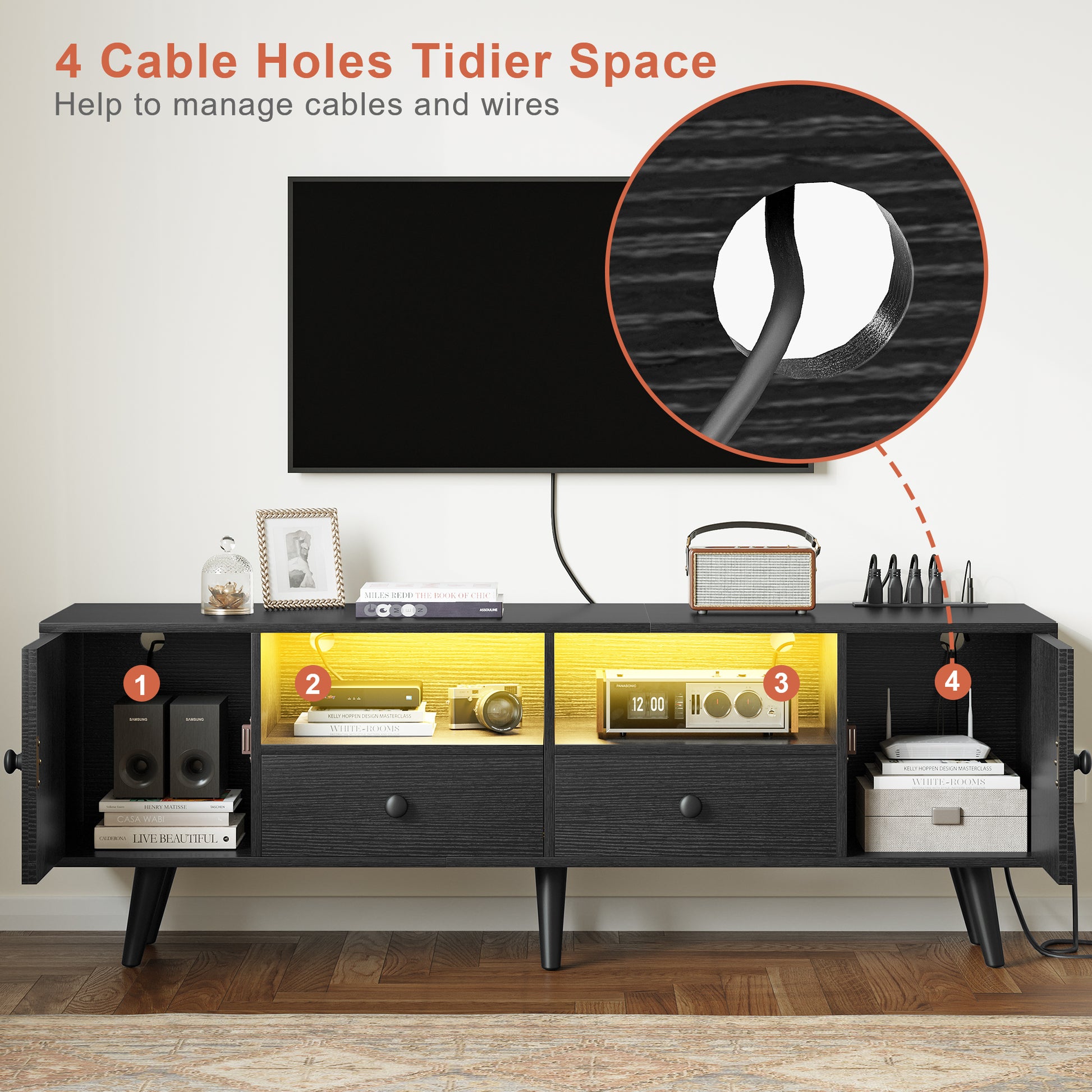 WOWLIVE 59"&70" LED Wood TV Stand with Power Outlets, Modern Entertainment Center for TVs
