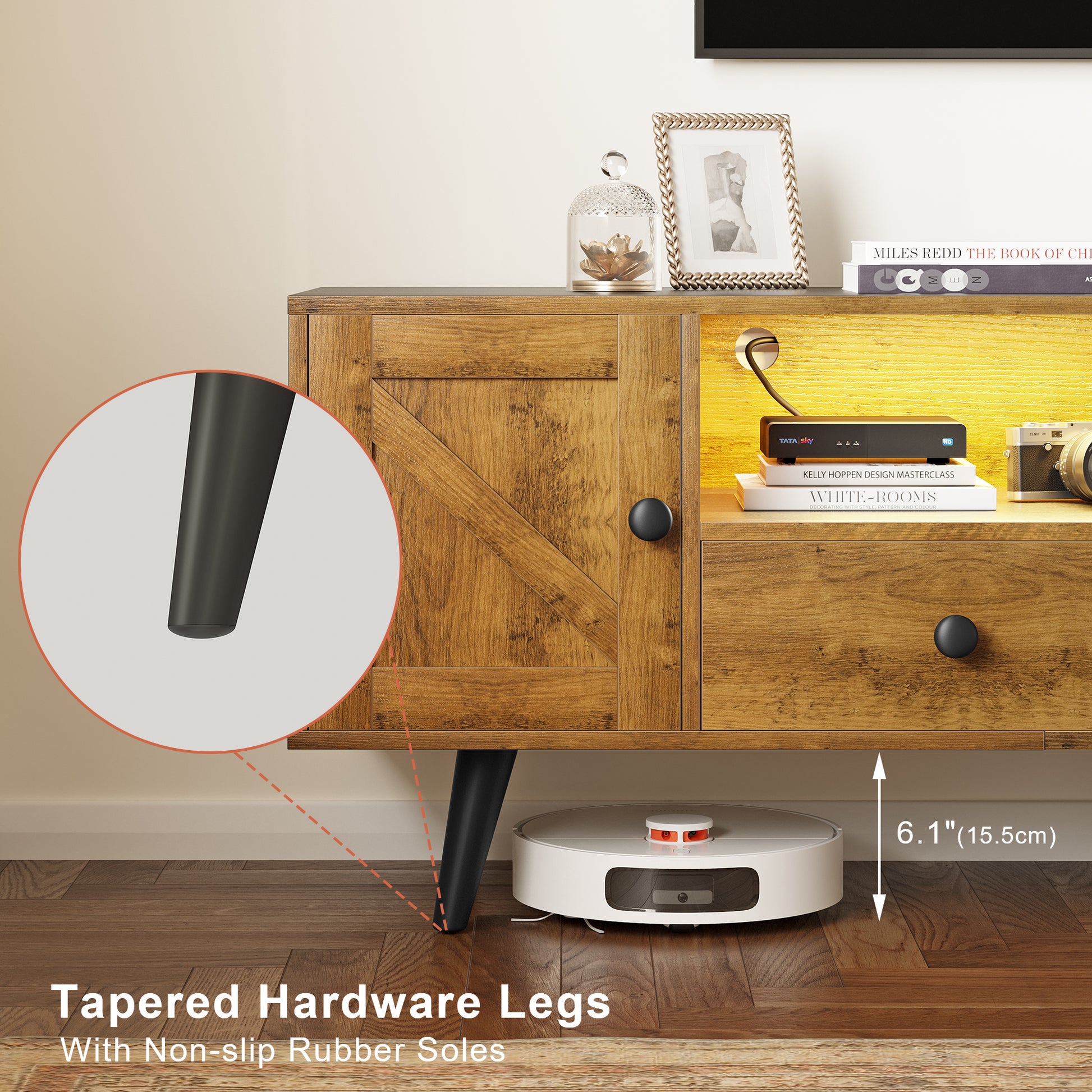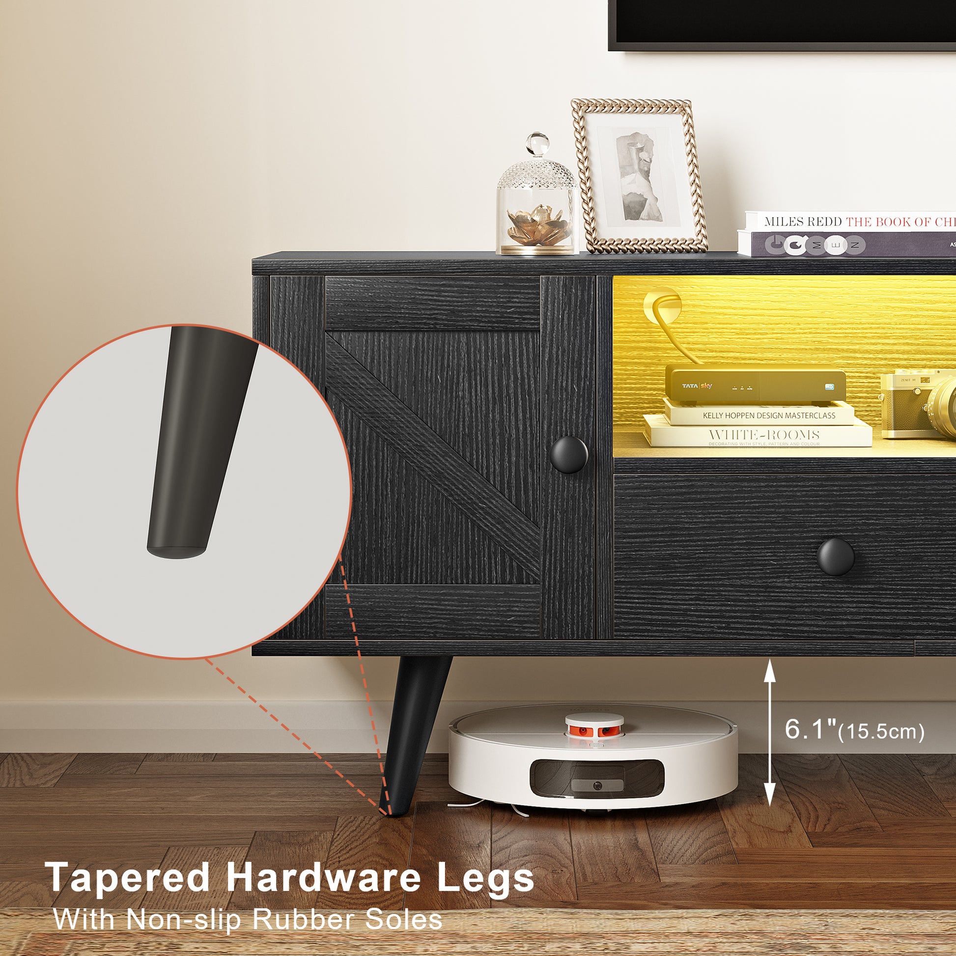 Whether you like modern or farmhouse style, this LED wood TV stand is a wonderful choice for you. This TV stand is equipped with 20 kinds of LED lights, whether you want to listen to beautiful music at home, turn on the warm yellow light and realize the beauty of life, or enjoy gaming time with your friends in the living room with the blue gaming light on, this TV stand LED will always have a light that suits you to bring you the best viewing experience. Are you attracted to it? Bring it home now!