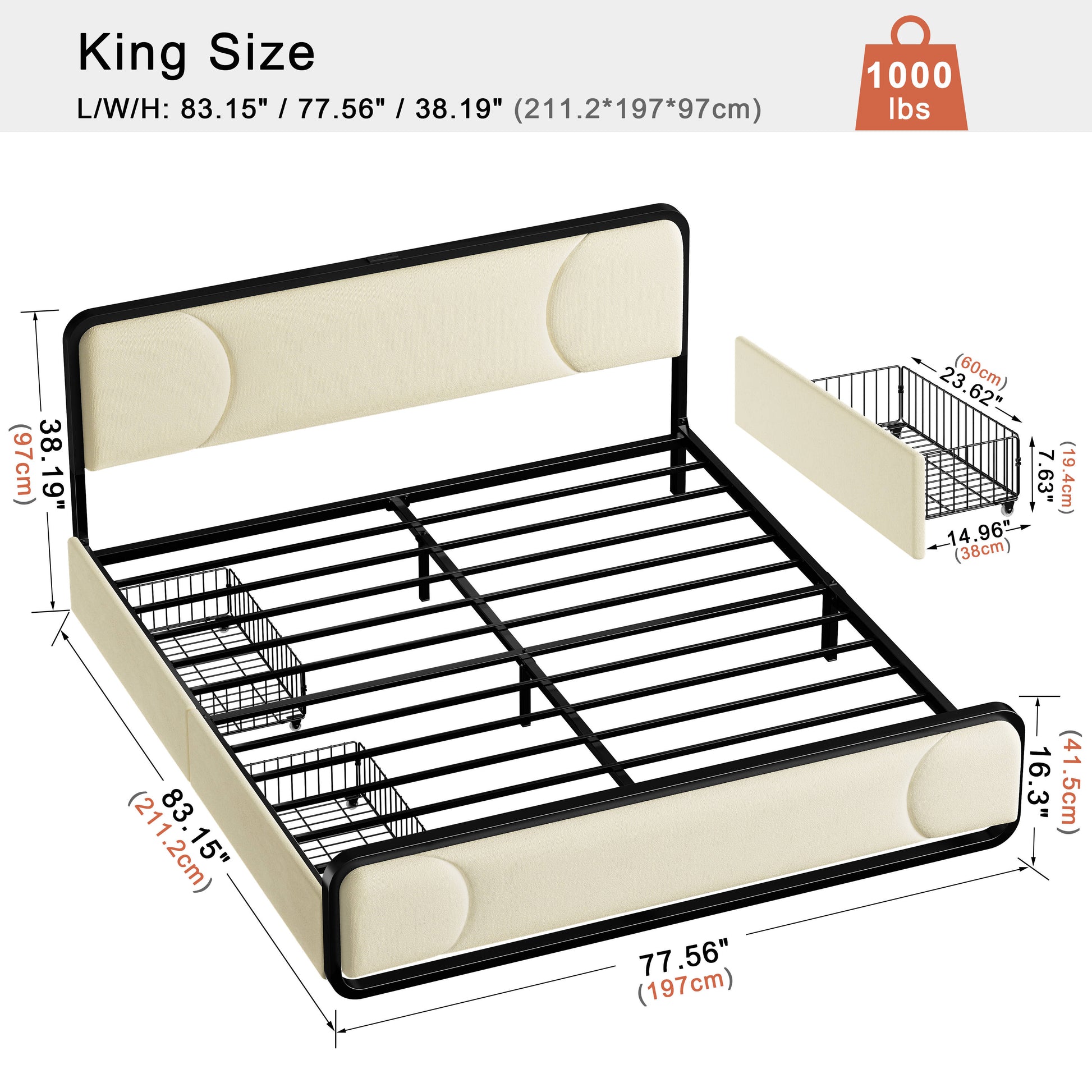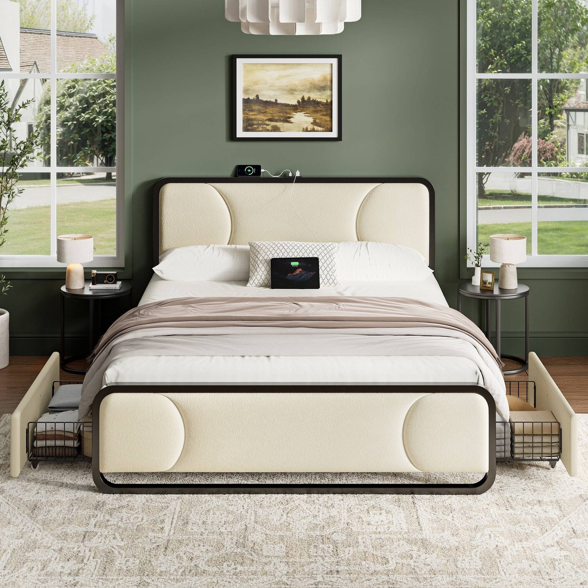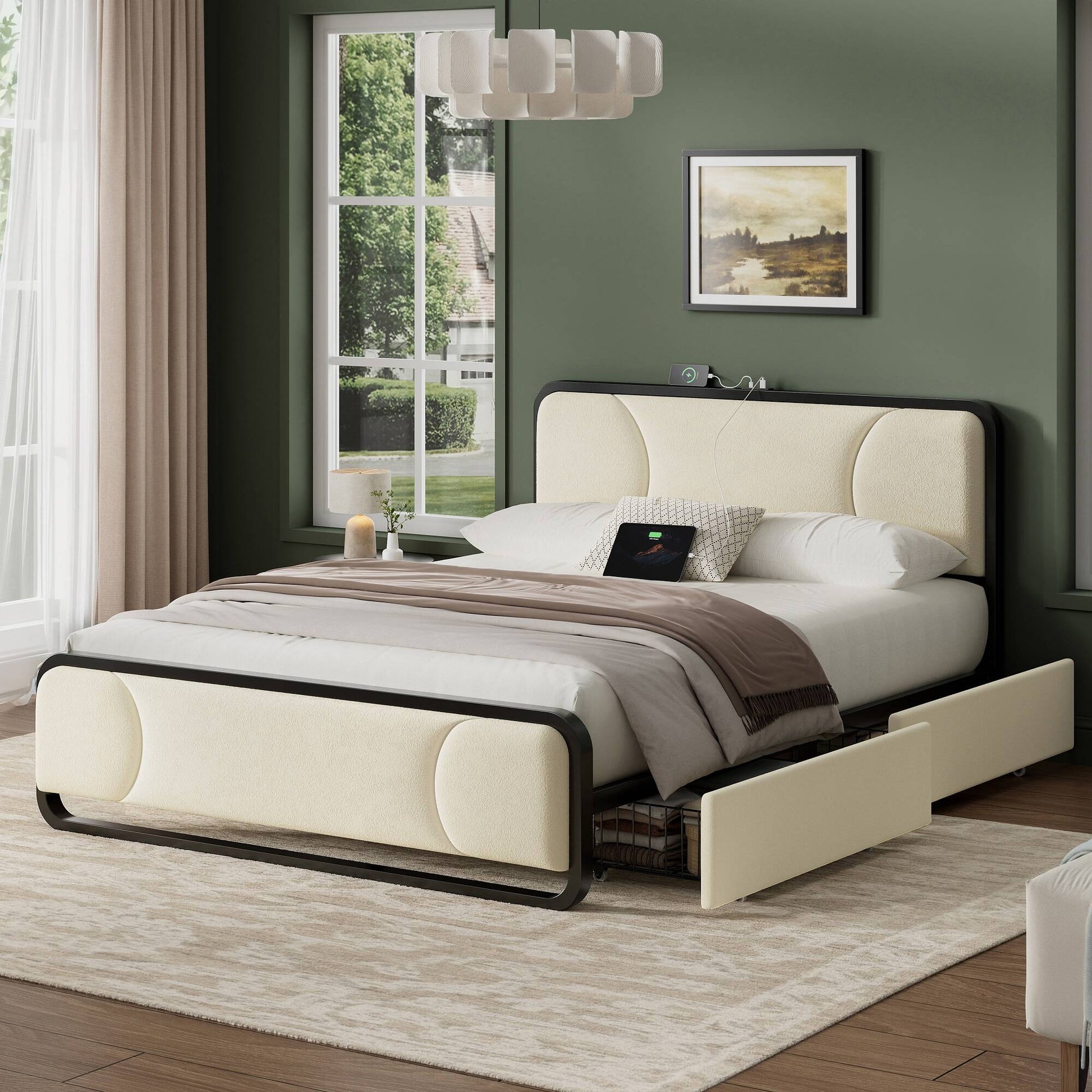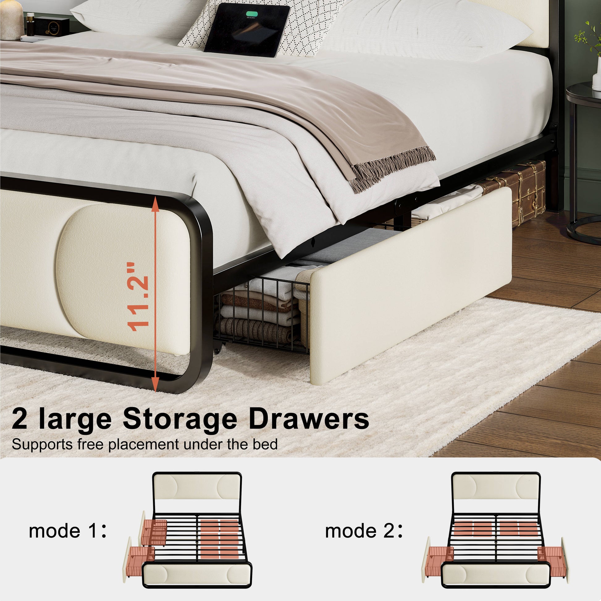 WOWLIVE Full/Queen/King Platform Bed with 2 Storage Drawers, Modern Bed Frame with Charging Station, No Spring Boxing Needed