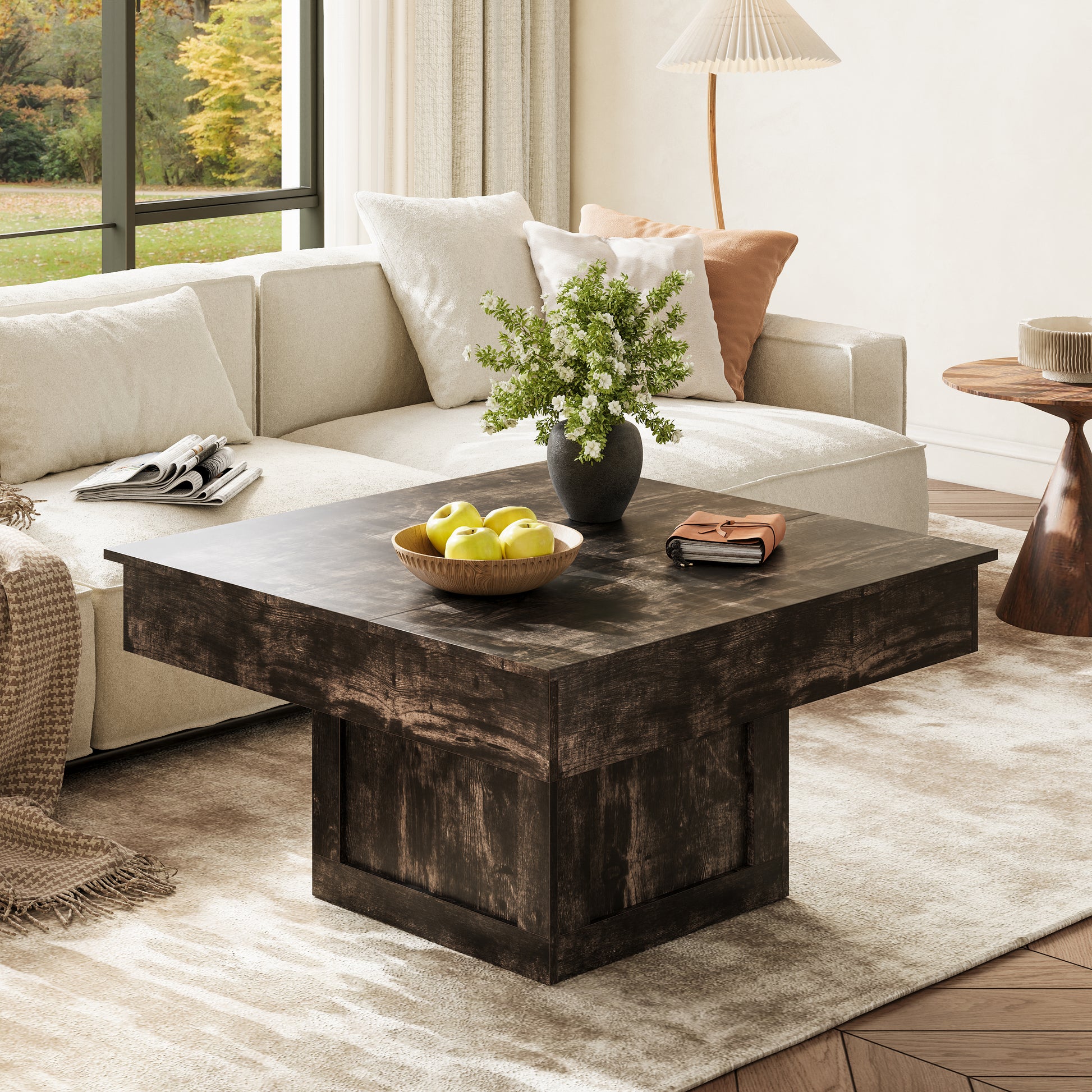 This LED coffee table can effectively enhance the atmosphere of your space and is suitable for various indoor styles such as farmhouse, modern, and retro. This lift topcoffee table can meet your different height requirements. It can not only be used during work or gatherings, but also as a salon table that can accommodate 5 to 6 people simultaneously. It also features a large-capacity design and hidden storage space that can store snacks, beverages, office supplies, etc., meeting your storage needs.